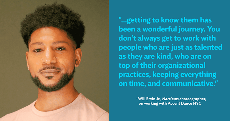 NEXT commission recipient Will Ervin Jr. shares his unique perspective on developing Narcissus for Accent Dance NYC, and its connection to Black and queer identity.